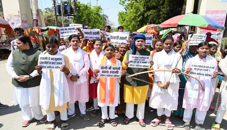 वाराणसी में शंकराचार्य स्वामी अविमुक्तेश्वरानन्द के बयान पर महिलाओं का प्रदर्शन, लमही में आक्रोश मार्च