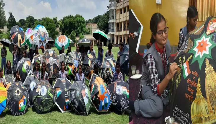 BHU : केंद्रीय विद्यालय में छाता चित्रकला कार्यशाला का हुआ आयोजन, बच्चों ने छातों पर उकेरा देश भक्ति चित्र