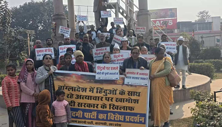 वाराणसी। बांग्लादेश में हिंदू समुदाय के खिलाफ हो रहे कथित संगठित अत्याचारों के विरोध में आम आदमी पार्टी वाराणसी इकाई ने रविवार को कचहरी स्थित अंबेडकर पार्क में जोरदार प्रदर्शन किया। इस दौरान कार्यकर्ताओं ने बांग्लादेश के प्रधानमंत्री का पुतला दहन कर अपना विरोध दर्ज कराया और भारत सरकार से कड़े कदम उठाने की मांग की।