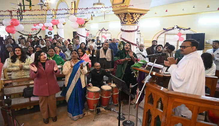 लाल गिरजाघर में क्रिसमस का उल्लास, धूमधाम से मनाया जा रहा प्रभु यीशु का जन्मोत्सव, प्रार्थना में शामिल होने उमड़े अनुयायी