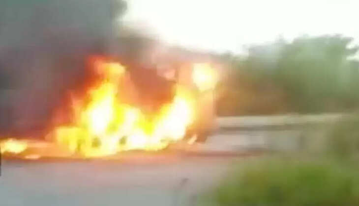 चांदपुर चौराहे पर सिलेंडर लदे ट्रक में लगी आग, मची अफरातफरी
