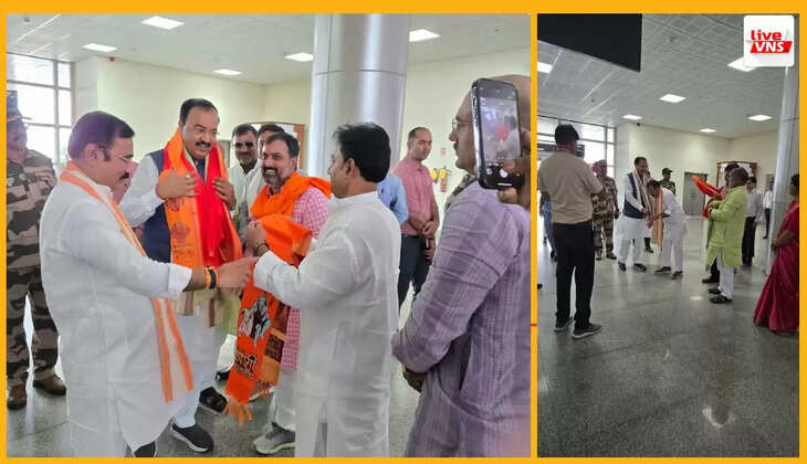 वाराणसी पहुंचे डिप्टी सीएम केशव प्रसाद मौर्य, एयरपोर्ट पर पार्टी कार्यकर्ताओं ने किया स्वागत
