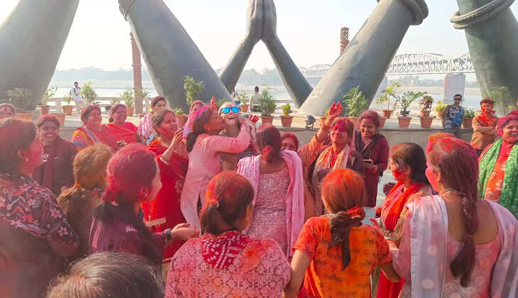 गोवर्धन धाम मंदिर के बाद श्रद्धालुओं ने नमो घाट पर स्थित "नमस्ते करते हुए स्टैचू" के पास भी अबीर-गुलाल उड़ाकर होली खेली। पूरे क्षेत्र में भक्तिमय वातावरण बन गया और रंगों के साथ संगीत और भजनों की गूंज सुनाई दी। श्रद्धालुओं ने भगवान श्रीकृष्ण के जयकारे लगाते हुए पुष्पों और रंगों से भक्ति की अभिव्यक्ति की।