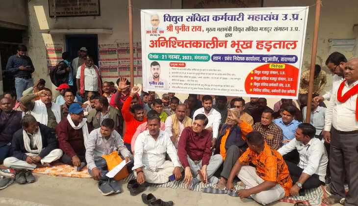 वाराणसी। विद्युत संविदा कर्मचारी महासंघ एवम विद्युत संविदा मजदूर संगठन, उत्तर प्रदेश के मुख्य महामंत्री पुनीत राय के द्वारा संविदा कर्मचारियों के 5 सूत्रीय मांगों को लेकर अनिश्चितकालीन भूख हड़ताल पर बैठ गए।
