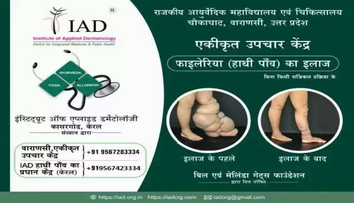 वाराणसी। जनपद में अब गंभीर फाइलेरिया (हाथीपाँव) का बिना किसी सर्जिकल प्रक्रिया से उपचार संभव हो पाएगा। फाइलेरिया मुक्त भारत की दिशा में चौकाघाट स्थित राजकीय आयुर्वेदिक महाविद्यालय एवं चिकित्सालय में आईएडी फाइलेरिया एकीकृत उपचार केंद्र पर निःशुल्क उपचार की सुविधा मौजूद है। यहां मौजूद आयुर्वेद और योगा पद्धति, हाथीपांव ग्रसित गंभीर रोगियों के सम्पूर्ण उपचार में मददगार साबित होगी और उन्हें सामान्य जीवन की ओर ले जा सकेगी।