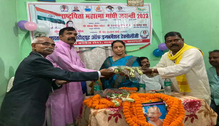 वाराणसी। राजातालाब स्थित भारत माता इन्स्टिट्यूट आफ इन्फ़ॉर्मेशन टेक्नोलॉजी में महात्मा गांधी एवं लाल बहादुर शास्त्री का जयंती समारोह बड़े ही धूमधाम से मनाया गया। कार्यक्रम का शुभारंभ बतौर मुख्य अतिथि आराजीलाईन ब्लाक प्रमुख नगीना सिंह पटेल प्रतिनिधि डॉ. महेंद्र सिंह पटेल के द्वारा महात्मा गांधी एवं लाल बहादुर शास्त्री के चित्र पर माल्यार्पण कर किया गया।