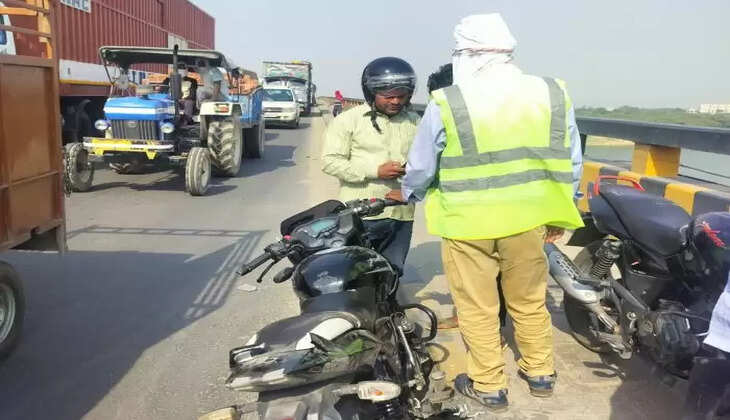 विश्वसुंदरी पुल पर कार ने मारी टक्कर, बाइक सवार घायल