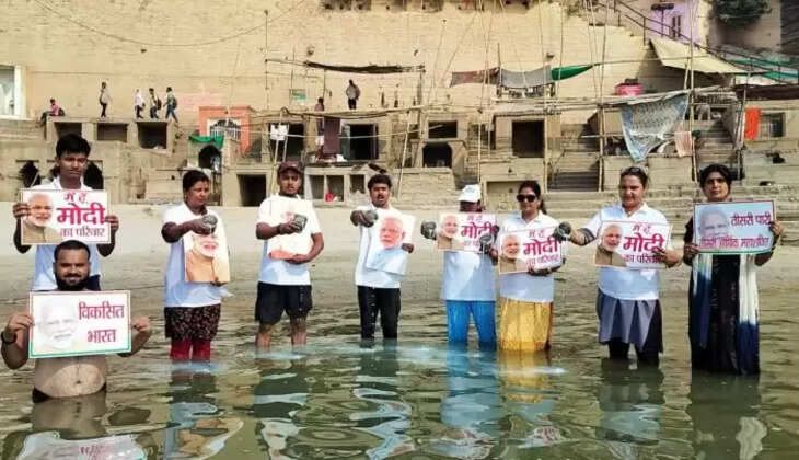 गंगासेवियों ने श्रमदान कर गंगातलहटी की सफाई की। पीएम मोदी के विजय की कामना संग मां गंगा का मंत्रोच्चार के साथ दुग्धाभिषेक किया। गंगा के गोद मे खड़े होकर हाथों में पीएम मोदी की तस्वीरों सहित विभिन्न संकल्पों जैसे विकसित भारत, तीसरी पारी में तीसरी आर्थिक महाशक्ति बने भारत आदि लिखी तख्तियों को लिए गंगापुत्र नरेंद्र मोदी के समर्थन में हर हर महादेव, हर हर गंगे, नमामि गंगे का उद्घोष किया।
