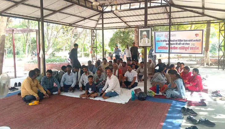 वाराणसी। Banaras Hindu University के मधुबन पार्क में संविदा और दैनिक वेतन भोगी कर्मचारियों का नियमितीकरण को लेकर चल रहा धरना सातवें दिन और तेज हो गया है। अब इस आंदोलन को कर्मचारियों के परिवारजनों, खासकर बच्चों और संबद्ध कॉलेजों के कर्मचारियों का भी समर्थन मिलने लगा है, जिससे प्रदर्शन का दायरा लगातार बढ़ता जा रहा है।