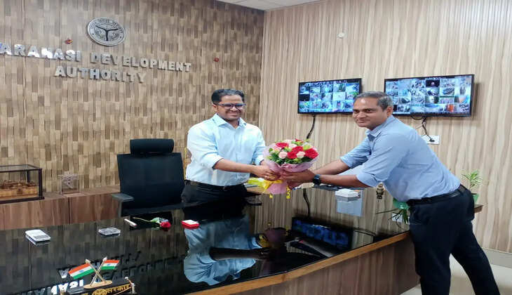 वाराणसी। झांसी में बतौर नगर आयुक्त तैनात पुलकित गर्ग ने वाराणसी में उपाध्यक्ष वाराणसी विकास प्राधिकरण का कार्यभार सोमवार 30 अक्टूबर 2023 को ग्रहण किया। वी.डी.ए. सचिव, डॉ. सुनील कुमार वर्मा ने उन्हें पदभार ग्रहण करवाया। बनारस के 50वें वी.डी.ए. उपाध्यक्ष के रूप में कार्यभार ग्रहण करने के उपरान्त नवीन उपाध्यक्ष द्वारा समस्त अधिकारियों / कर्मचारियों से मुलाकात की गयी।
