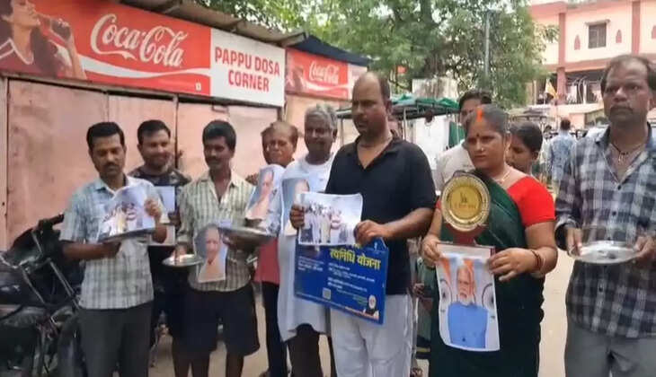 ठेला पटरी व्यवसायियों ने अतिक्रमण के खिलाफ कार्रवाई का किया अनोखा विरोध, सड़क पर मांगी भीख