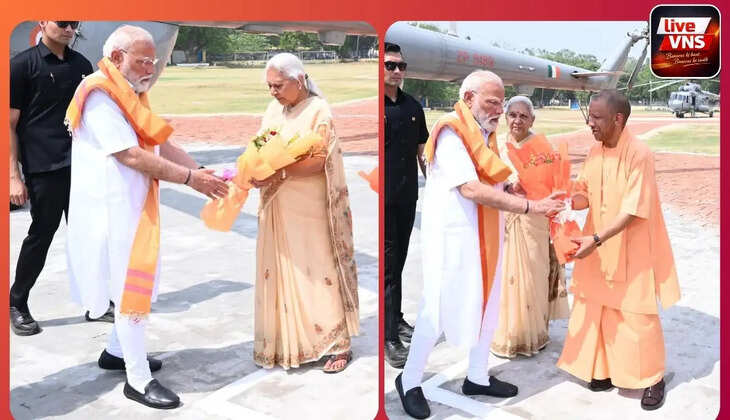 वाराणसी। प्रधानमंत्री नरेंद्र मोदी अपने संसदीय क्षेत्र के दो दिवसीय दौरे पर मंगलवार को काशी पहुंचे। यहां बीएलडब्ल्यू हेलीपैड पर राज्यपाल आनंदी बेन पटेल व मुख्यमंत्री योगी आदित्यनाथ ने पुष्प गुच्छ देकर उनका स्वागत किया।
