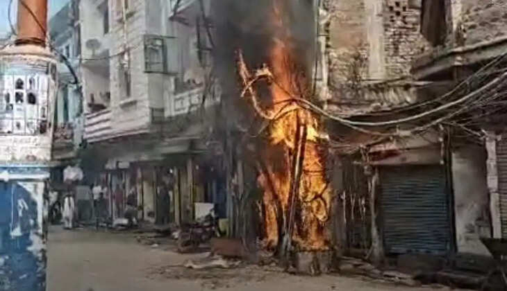 नईसड़क में ट्रांसफार्मर धधका, मचा हड़कंप, एक घंटे की मशक्कत के बाद बुझी आग