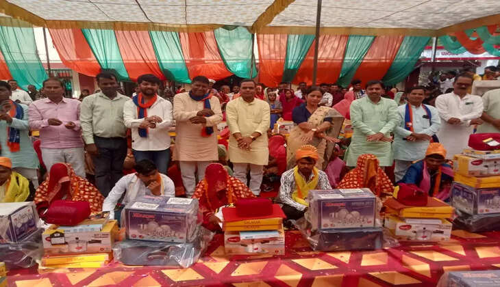 वाराणसी: आराजी लाइन में 46 जोड़ों ने लिए साथ जीने-मरने के सात फेरे, मुख्यमंत्री सामूहिक विवाह योजना के तहत भव्य आयोजन, विधायक ने दिया उपहार