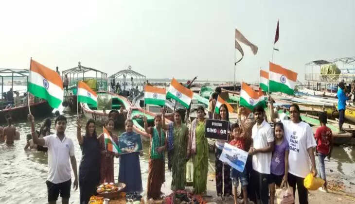 नावों पर बैठे लोगों ने "ऑपरेशन सिंदूर" से संबंधित तख्तियां उठाए हुए सेना के अदम्य साहस को श्रद्धांजलि दी। इस अवसर पर ब्रह्मोस, राफेल और आईएनएस विक्रांत जैसे अत्याधुनिक युद्ध उपकरणों के चित्र भी प्रदर्शित किए गए, जो भारत की सैन्य ताकत के प्रतीक हैं।