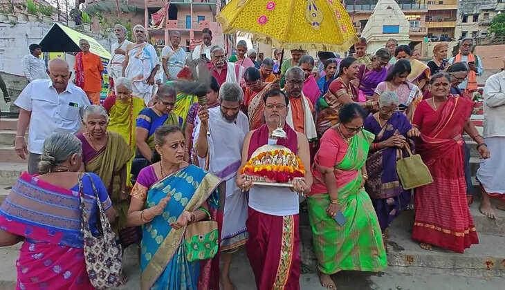 शोभा यात्रा आश्रम से निकलकर सोमेश्वर घाट पहुंची, जहां से बजड़े के माध्यम से गंगा यात्रा शुरू हुई। यह यात्रा अस्सी घाट, दशाश्वमेध घाट और पंचगंगा घाट होते हुए पुनः सोमेश्वर घाट लौटी। इस दौरान गंगा तट पर भक्तों ने भक्ति गीतों और जयकारों से वातावरण को भक्तिमय बना दिया।