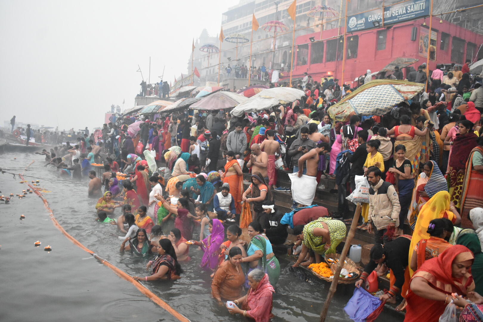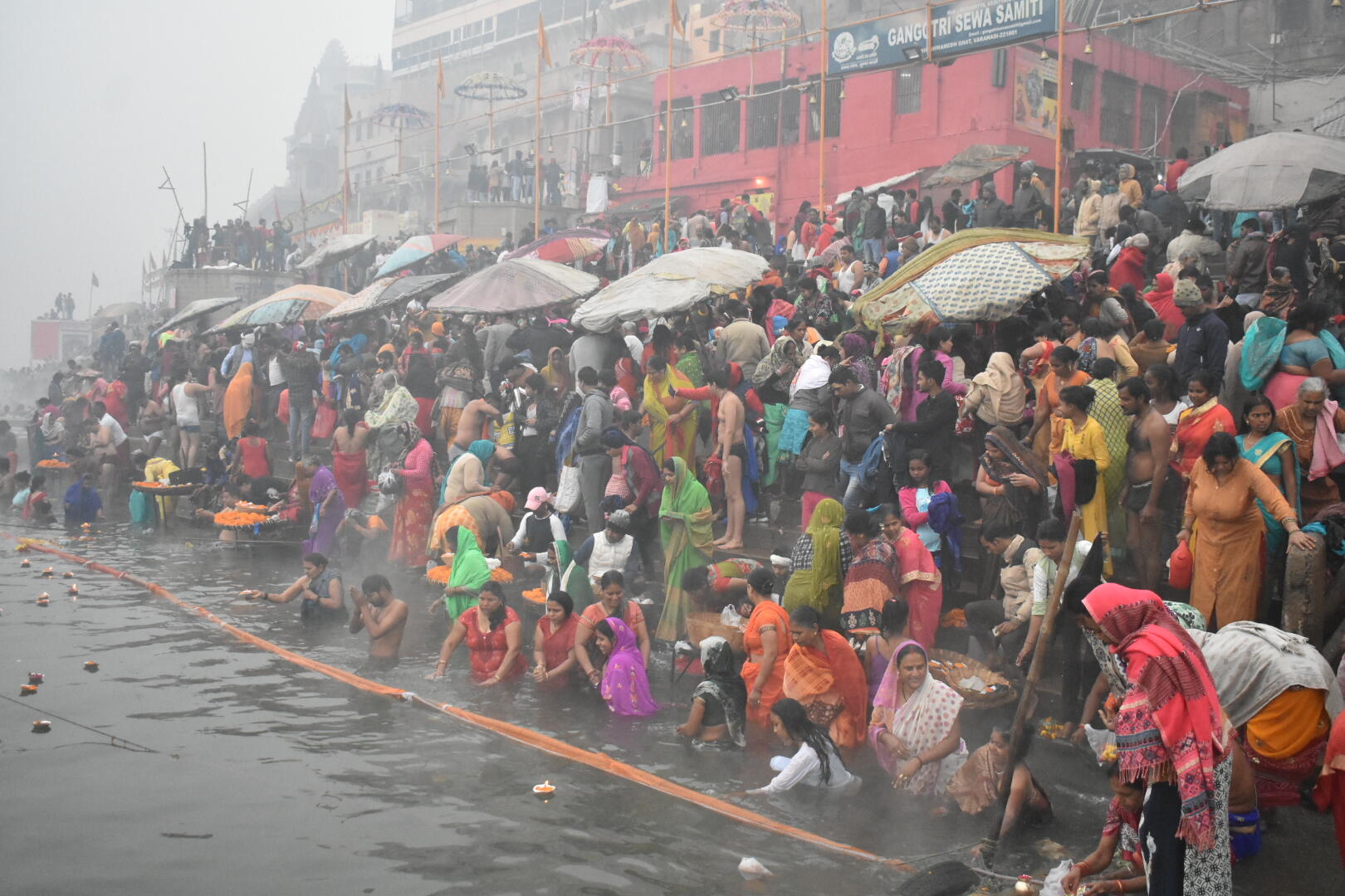 वाराणसी। मकर संक्रांति पर सुबह से ही घना कोहरा छाया रहा। इसके अलावा गलन भी रही लेकिन श्रद्धालुओं पर इसका कोई असर नहीं दिखा। तड़के वाराणसी के गंगा घाटों पर श्रद्धालुओं की भीड़ जुट गई।