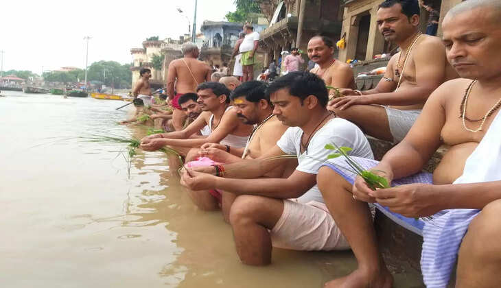 सावन की पूर्णिमा तिथि को गंगा तट पर वैदिक ब्रह्मणों ने किया श्रावणी उपाकर्म