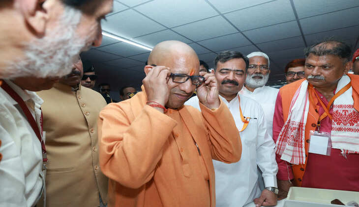 नेत्रकुम्भ पहुंचे सीएम योगी, सेवा कार्यों के लिए की सराहना