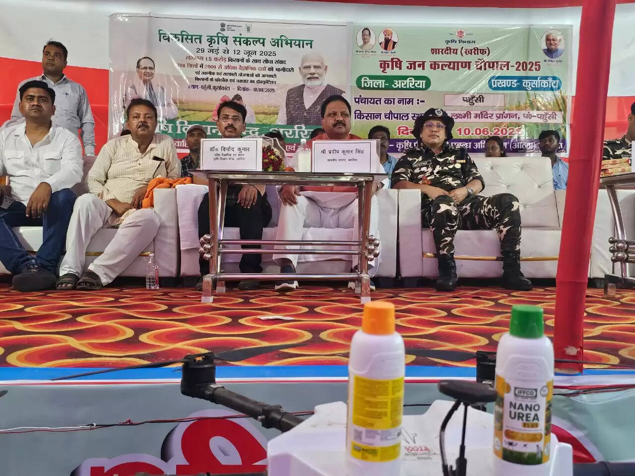 फारबिसगंज/ अररिया, 10 जून (हि.स.)।कृषि एवं किसान कल्याण मंत्रालय भारत सरकार द्वारा देश भर में चलाई जा रही विकसित कृषि संकल्प यात्रा में अररिया से लोकसभा सांसद प्रदीप कुमार सिंह शामिल होकर किसान भाइयों को आधुनिक तकनीक से डबल मुनाफे वाली खेती के तौर तरीके अपनाने का संदेश दिया, जिससे किसानों का कल्याण हो सके।