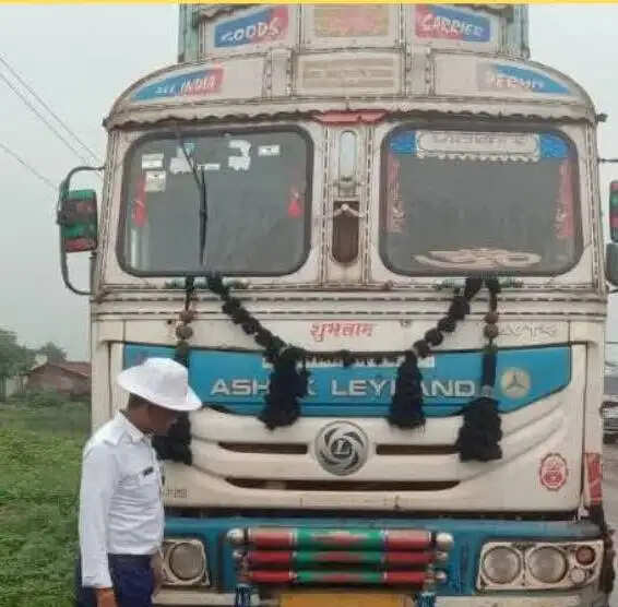 यातायात पुलिस की कार्रवाई : दो ओवरलोड ट्रकों का कटा चाैसठ हजार का चालान, लाइसेंस होगा निलंबित