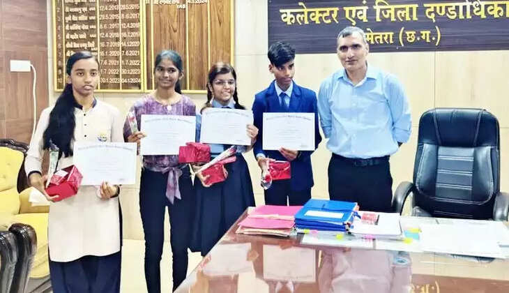 बेमेतरा, 10 मई (हि.स.)। छत्तीसगढ़ माध्यमिक शिक्षा मंडल रायपुर द्वारा कक्षा 10वीं एवं कक्षा 12वीं का परीक्षा परिणाम घोषित कर दिया गया है। इसी क्रम में जिले में 10वीं एवं 12वीं स्कूल के प्रथम, द्वितीय एवं तृतीय स्थान प्राप्त करने वाले विद्यार्थिओं को कलेक्टर रणबीर शर्मा ने प्रशस्ति पत्र देकर सम्मान किया और उनके उज्ज्वल भविष्य की कामना की।