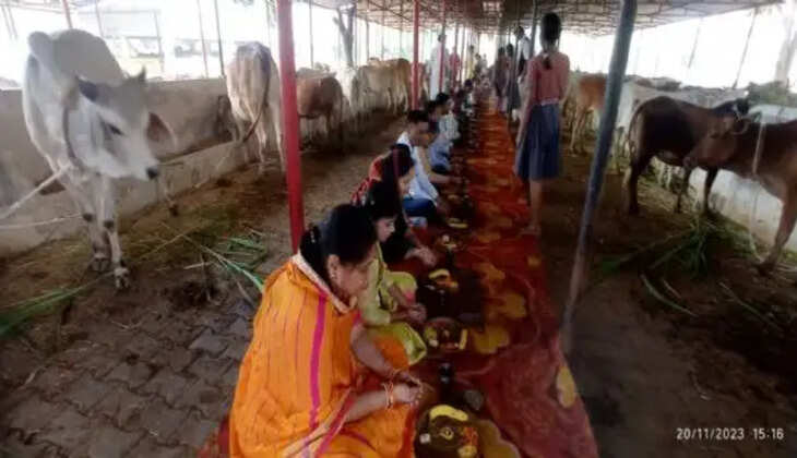 गोधाम में श्रद्धालुओं ने गाय की पूजा