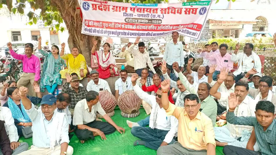 धमतरी ब्लाक के पंचायत सचिव 18 मार्च से अनिश्चितकालीन हड़ताल पर बैठे है। मंगलवार को पंचायत सचिवों ने सरकार को जगाने के लिए नगाड़ा बजाकर प्रदर्शन किया। पंचायत सचिव संघ के अशोक कुमार साहू, होरीलाल साहू, कोमल नेताम, हेमंत साहू, एमआर निषाद और पूर्णिमा साहू ने बताया कि भाजपा ने विधानसभा चुनाव के दौरान मोदी की गारंटी में शासकीयकरण करने की बात कही थी, लेकिन आज दिनांक तक सरकार द्वारा इस दिशा में कोई पहल नहीं किया। संघ की एक सूत्रीय मांग है कि पंचायत सचिवों का शासकीयकरण किया जाए। आज राज्य सरकार को जगाने नगाड़ा बजाकर प्रदर्शन किया गया है।
