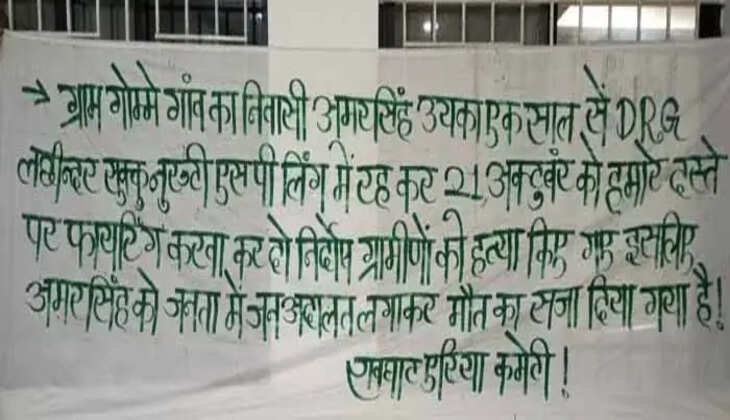 नक्सलियों ने बैनर लगाकर जनअदालत में ग्रामीण की हत्या करने का खुलासा किया