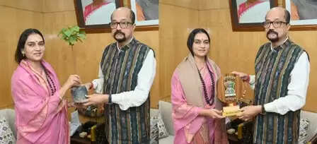राज्यपाल डेका से पंचतत्व फाउंडेशन की संस्थापक शिप्रा पाठक ने की सौजन्य भेंट