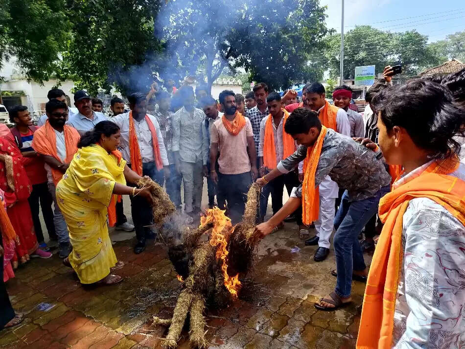 शुक्रवार को हिंदू समाज संघर्ष समिति जिला धमतरी के तत्वावधान में बजरंग दल एवं विहिप ने संयुक्त रूप से दो नन द्वारा आदिवासियों का मतांतरण कराने का आरोप लगाते हुए जमकर विरोध प्रदर्शन किया। इस दौरान घड़ी चौक से गोल बाजार, मठ मंदिर चौक होते हुए गांधी मैदान तक बजरंग दल एवं विहिप के कार्यकर्ताओं ने रैली निकालकर मतांतरण को लेकर जमकर विरोध जताया। इसके बाद गांधी मैदान में आदिवासी बेटियों के तस्करों के खिलाफ आक्रोश सभा आयोजित किया गया। सभा के बाद कांग्रेस नेता राहुल गांधी, प्रियंका गांधी एवं पूर्व मुख्यमंत्री भूपेश बघेल का पुतला फूंक मतांतरण को सह देने का आरोप लगाया।