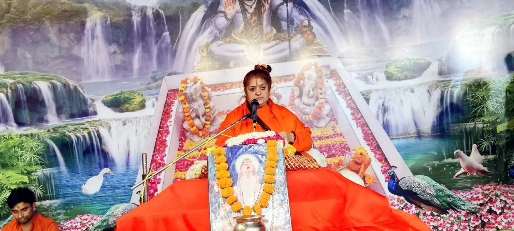 कार्यकारी अध्यक्ष बजरंग गर्ग के सानिध्य में चल रही शिव पुराण कथा में श्रद्धालुओं को संबोधित कर रही थी।