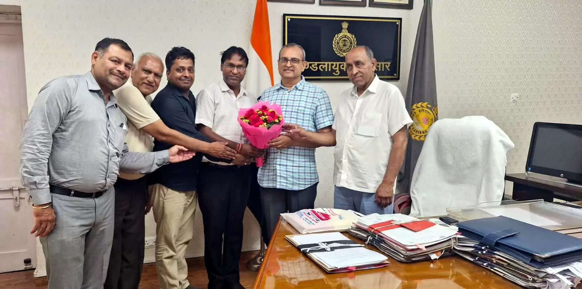 हिसार मंडल आयुक्त अशोक गर्ग का बुक्का देकर अभिनंदन किया।