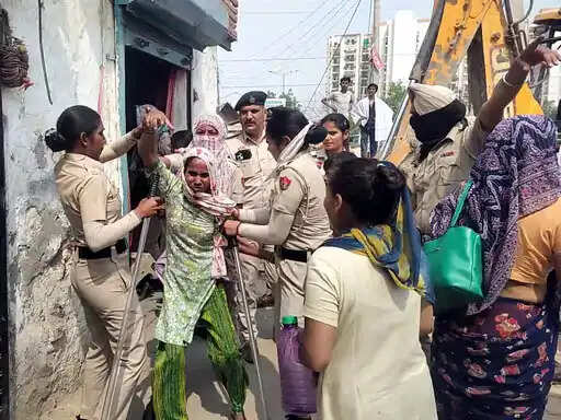 फरीदाबाद : अवैध निर्माणों पर चला पीला पंजा, महिलाओं ने किया विरोध