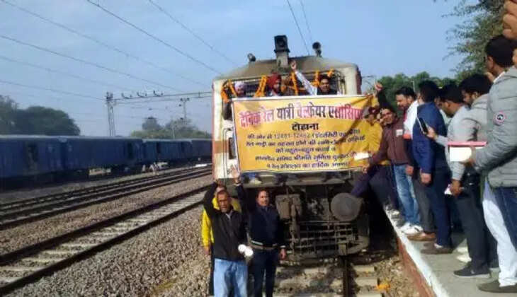 टोहाना में इंटरसिटी एक्सप्रेस रेलगाड़ी का पहली बार हुआ ठहराव, दैनिक यात्रियों ने मनाया जश्न