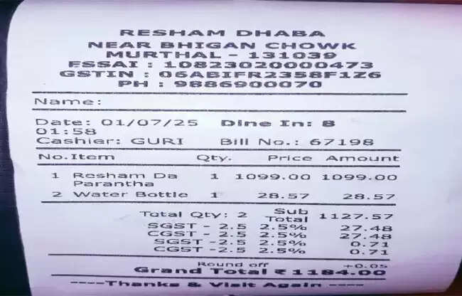 मुरथल जहां अपने परांठों के लिए प्रसिद्ध है,वहीं मुरथल के एक मशहूर ढाबे रेशम ढाबा का एक बिल सोशल मीडिया पर वायरल हो गया, जिसने