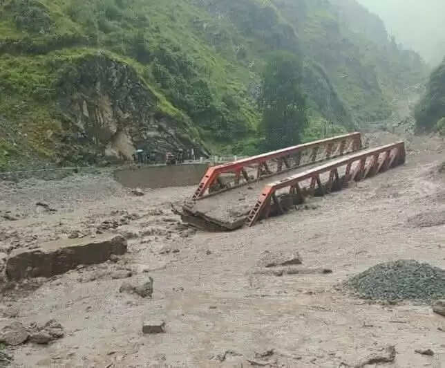 चम्बा, 06 जुलाई (हि.स.)। हिमाचल प्रदेश के चम्बा जिले के चुराह उपमंडल में रविवार सुबह भारी बारिश और बादल फटने की घटना ने भारी तबाही मचाई। नकरोड़-चांजू मार्ग पर स्थित बघेईगढ़ नाले में अचानक आई बाढ़ के कारण पुल पूरी तरह से बह गया जिससे चरड़ा, चांजू, देहरा और बघेईगढ़ ग्राम पंचायतों का उपमंडल व जिला मुख्यालय से संपर्क पूरी तरह कट गया है।