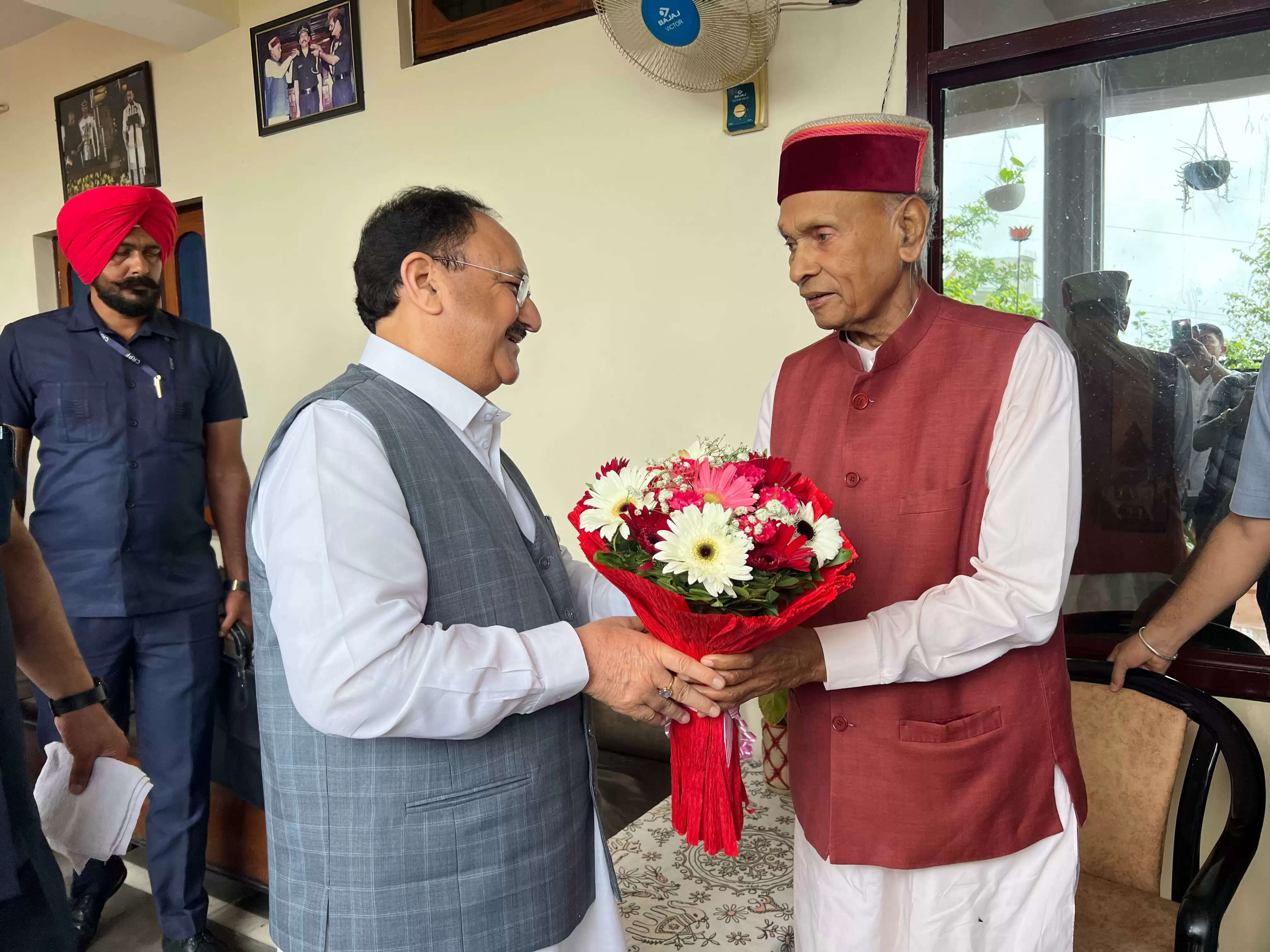 भाजपा अध्यक्ष जेपी नड्डा ने पूर्व सीएम प्रेम कुमार धूमल से की मुलाकात