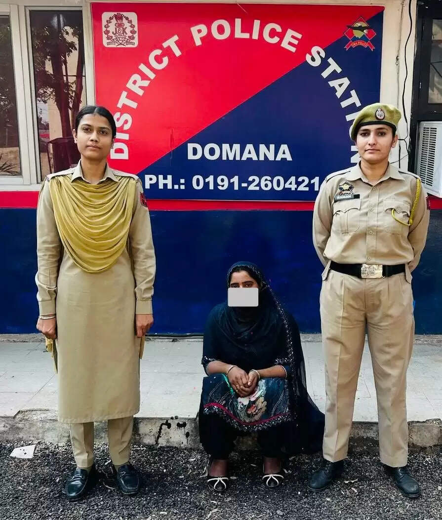 पुलिस स्टेशन दोमाना की एक गश्ती टीम ने एक महिला को पकड़ा जिसकी पहचान सलीमा बीबी बेटी मंगता अली निवासी बलोल खड्ड बारी ब्राह्मणा सांबा के रूप में हुई।उसकी गिरफ्तारी के समय की गई तलाशी में 12.56 ग्राम हेरोइन (चिट्टा) जैसा पदार्थ बरामद हुआ।