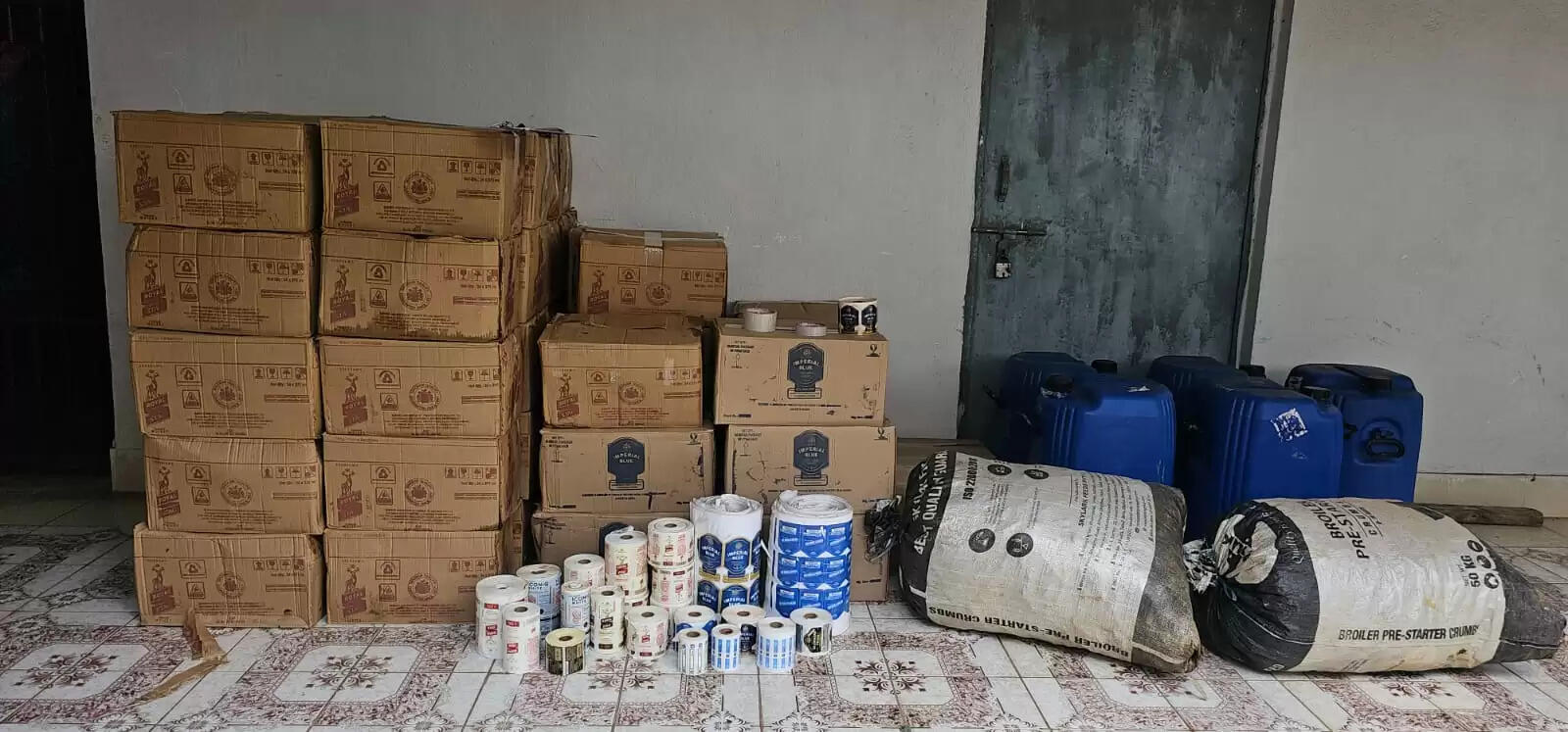 साथ ही सिलेटी रंग का बोलेरो, ब्लू रंग का एक फैशन प्रो बाइक, काला रंग का एसपी साइन बाईक सहित तीन हजार प्लास्टिक का ढक्कन, शराब के बोतल में लगने वाला दो बोरा और 19 बंडल स्टीकर जो विभिन्न ब्रांड के शराब का स्टीकर जब्त किया गया।