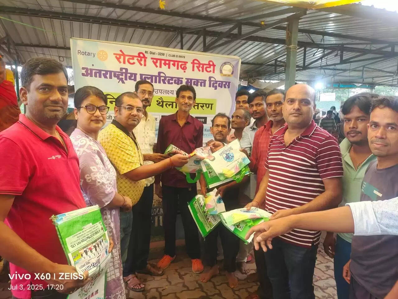 इस दौरान क्लब ने शहर के न्यू बस स्टैंड में स्थित सब्ज़ी मार्केट में लगभग 200 थैला का निःशुल्क वितरण किया, जो ग्राहक बिना थैला के सब्ज़ी ख़रीदने आए थे उन्हें थैला दिया गया। सब्ज़ी विक्रताओं को भी निःशुल्क थैला वितरण करते हुए कहा गया कि प्लास्टिक में सब्ज़ी न दें, बल्कि इस थैलों में सब्ज़ी दे।