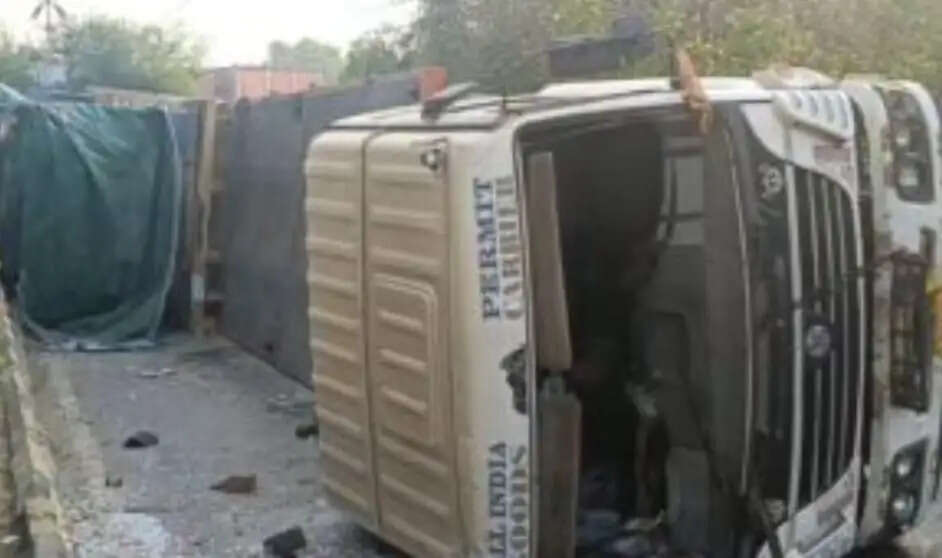 गैस सिलेंडर लदा ट्रेलर पलटा, चालक घायल