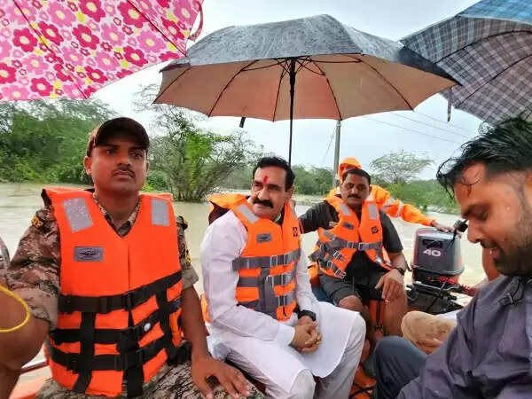 दतिया में पूर मंत्री डाॅ. नरोत्तम मिश्रा बाढ़ प्रभावित क्षेत्रों में पहुँचकर पीड़ितों से मिले