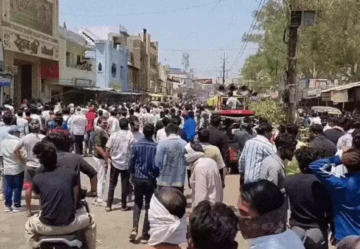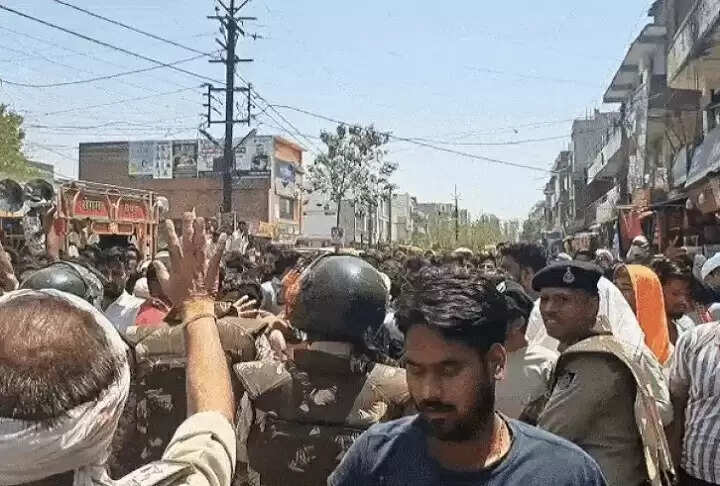 गुनाः हनुमान जयंती के जुलूस पर पथराव की घटना के विरोध में हिंदू संगठनों का प्रदर्शन, पुलिस ने खदेड़ा