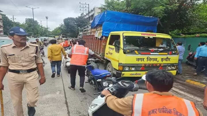 इंदौर, 28 जुलाई (हि.स.)। कलेक्टर आशीष सिंह एवं नगर निगम आयुक्त शिवम वर्मा के निर्देशानुसार जिला प्रशासन एवं नगर निगम द्वारा सोमवार को अतिक्रमण विरोधी अभियान के तहत संयुक्त कार्रवाई करते हुए झोन क्रमांक 11 में आरएनटी मार्ग रीगल चौराहा से छावनी चौराहा, छावनी चौराहा से सपना-संगीता टावर चौराहा तक की सड़कों और फुटपाथों को अतिक्रमण मुक्त किया गया। इसके साथी एयरपोर्ट क्षेत्र में भी सड़क किनारे नो पार्किंग स्थल पर खड़ी की गई 20 से अधिक बाइक भी जप्त की।