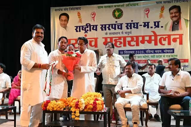 भोपाल, 18 सितंबर (हि.स.)। राजधानी भोपाल के रवीन्द्र भवन में सोमवार को राष्ट्रीय सरपंच संघ मध्यप्रदेश द्वारा सरपंच महासम्मेलन आयोजित किया गया। कार्यक्रम में पूर्व मुख्यमंत्री और कांग्रेस प्रदेश अध्यक्ष कमलनाथ शामिल हुए। कमलनाथ ने महासम्मेलन में कई बड़े वादे किये।