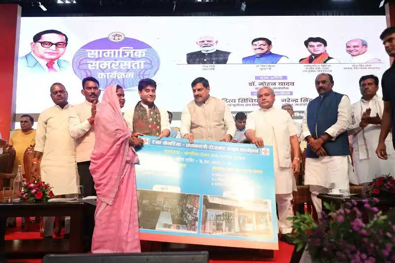 राजमाता विजयाराजे सिंधिया कृषि विश्वविद्यालय के दत्तोपंत ठेंगड़ी सभागार में आयोजित “समरसता सम्मेलन” में मुख्यमंत्री डॉ. यादव, केन्द्रीय संचार एवं पूर्वोत्तर क्षेत्र विकास मंत्री ज्योतिरादित्य सिंधिया, विधानसभा अध्यक्ष नरेन्द्र सिंह तोमर सहित अन्य अतिथियों ने संतजन एवं विभिन्न क्षेत्रों में ग्वालियर व प्रदेश का नाम रोशन कर रहीं आधा दर्जन विभूतियों को समरसता सम्मान से विभूषित किया। साथ ही सरकार की योजनाओं का लाभ उठाकर आत्मनिर्भरता की नई इबारत लिख रहे समाज के आखिरी छोर पर खड़े हितग्राहियों को हितलाभ वितरित किए। सम्मेलन में मौजूद सभी प्रतिभागियों को सामाजिक समरसता की शपथ दिलाई। इसके बाद सामूहिक भोज में भी शामिल हुए।