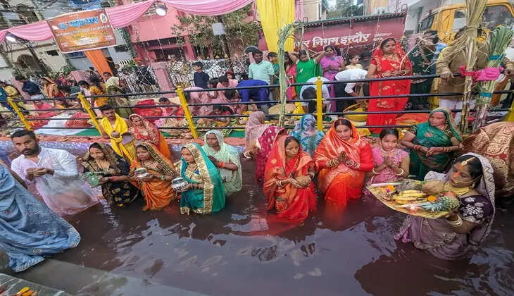 छठ महापर्वः पूर्वांचल के हजारों श्रद्धालुओं ने अस्ताचलगामी भगवान भास्कर को दिया अर्घ्य