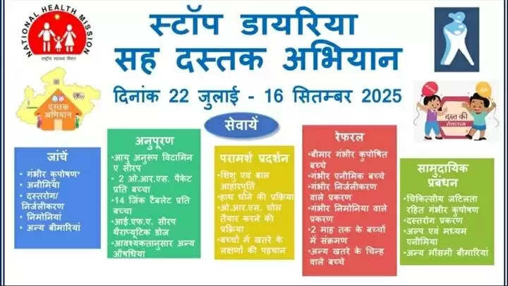 भोपाल, 29 जुलाई (हि.स.)। मध्य प्रदेश में डायरिया की रोकथाम, सफाई और ओआरएस से रखें अपना ध्यान' थीम पर आधारित स्टॉप डायरिया केम्पेन सह दस्तक अभियान 22 जुलाई से शुरू हुआ, जो कि 16 सितम्बर तक चलेगा। नगरीय प्रशासन एवं विकास आयुक्त संकेत भोंडवे ने मंगलवार को अभियान के दौरान नगरीय निकायों में की जाने वाली गतिविधियों के संबंध में निर्देश जारी किए है।