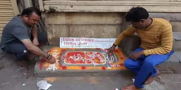 इंदौर में कांग्रेस का अनोखा विरोध, घरों के बाहर बनाई सिलेंडर की रंगोली
